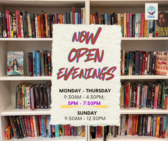 If you find it difficult to get to us during these hours, please contact us at cdjlib@gmail.com and we will work with you to find a time when a volunteer or church staff member will be available so you can visit us.